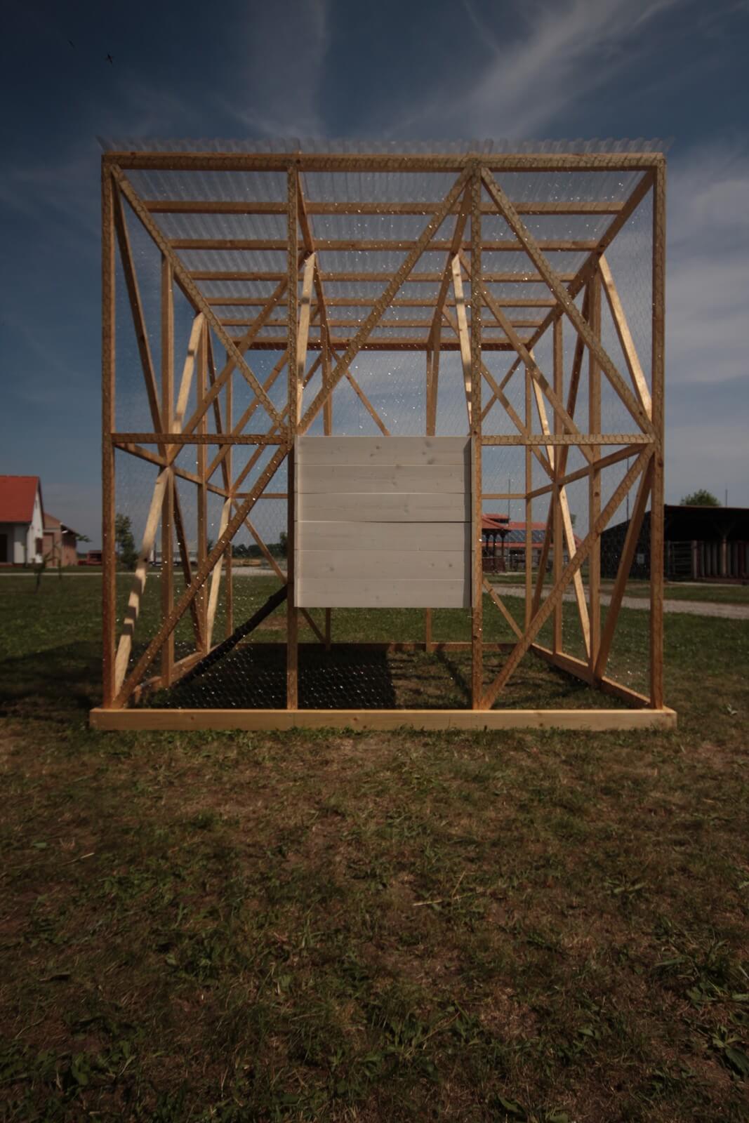 Egy könnyed későnyári alkotóműhely eredménye ez a tyúkól, amikor is az építészek "kiszabadultak" a gép mögül és önfeledten alkottak, sőt, építés közben olykor improvizáltak is. A Sztranyák Gergely és társai által tervezett "tyukocka" ötvözi a vernakuláris építészet spontán logikáját a műépítészet szemléletmódjával.